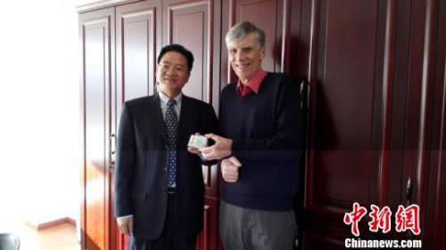 图为云南省外国专家局向高力行博士颁发云南省首张《外国人工作许可证》。钟欣 摄